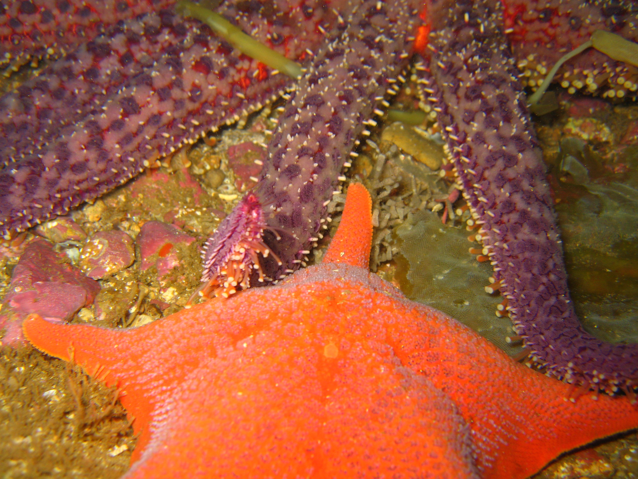 IMG_0723 * Sunflower Star approaches a Bat Star * 2048 x 1536 * (840KB)