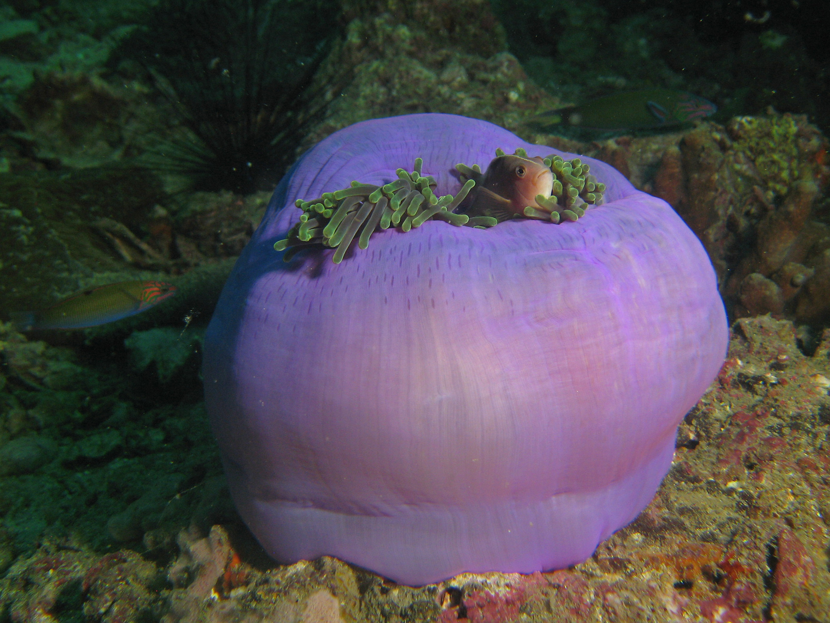 IMG_7881-crop * Skunk Anemonefish (Amphiprion akallopisos), Magnificent Sea Anemone (Heteractis magnifica) * 2452 x 1839 * (831KB)