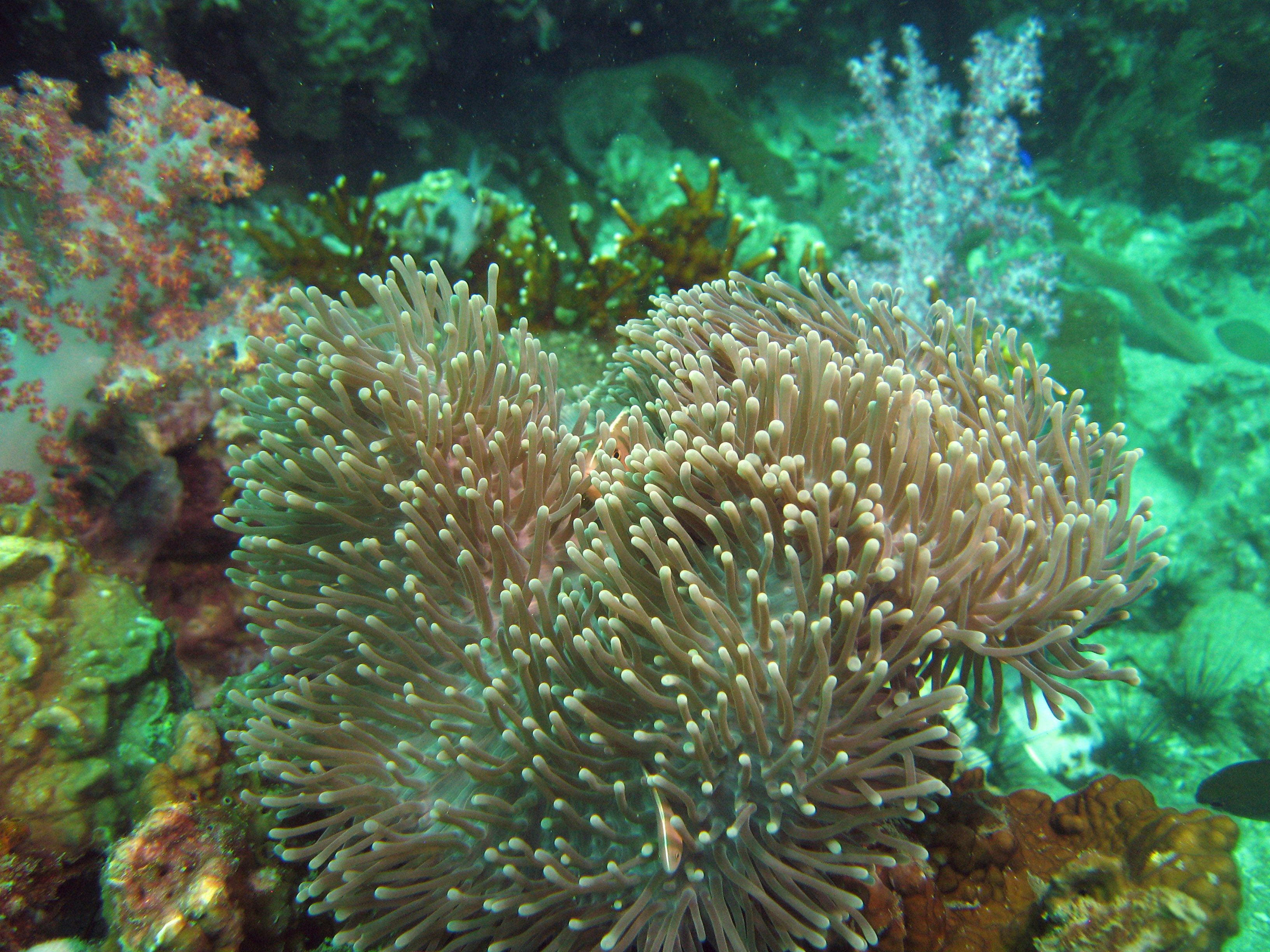 IMG_8094-crop * Skunk Anemonefish (Amphiprion akallopisos), Magnificent Sea Anemone (Heteractis magnifica), Indian Dascyllus (Dascyllus carneus) * 2441 x 1831 * (960KB)